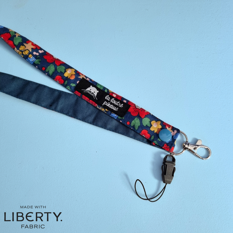 Le tour de cou possède un mousqueton métallique permettant d'accrocher un badge ainsi qu'une attache plastique avec lien détachable permettant d'y mettre un stylo !