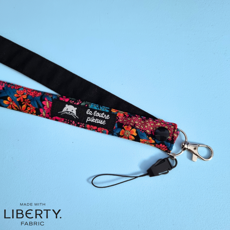 Le tour de cou possède un mousqueton métallique permettant d'accrocher un badge ainsi qu'une attache plastique avec lien détachable permettant d'y mettre un stylo !